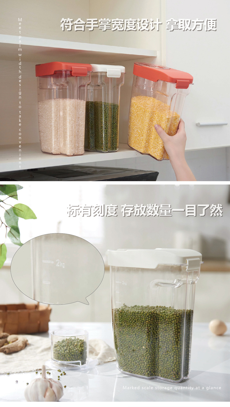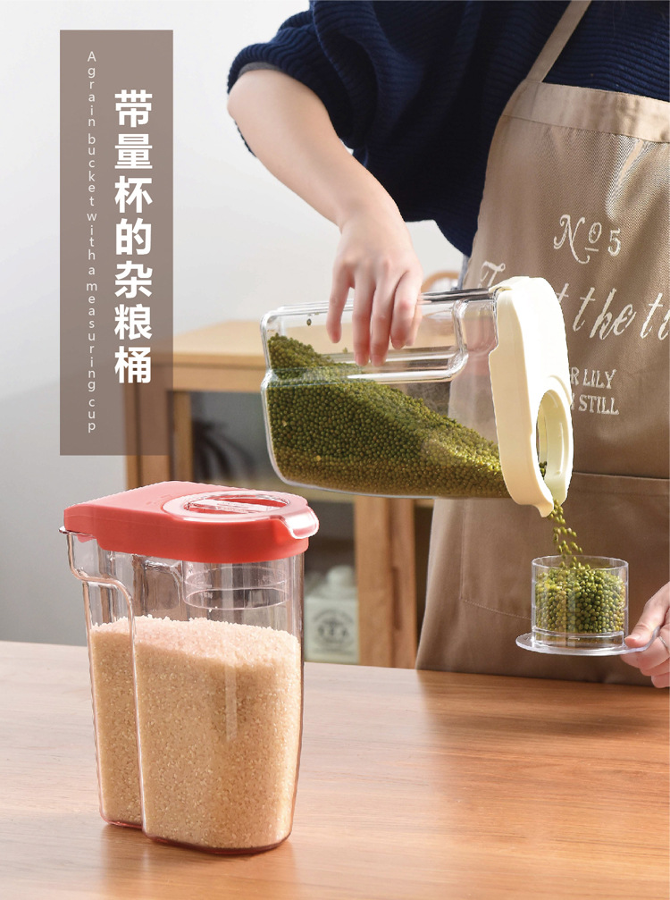 厂家现货 2kg塑料日本米桶 透明五谷杂粮桶 新款日式带量杯储米箱