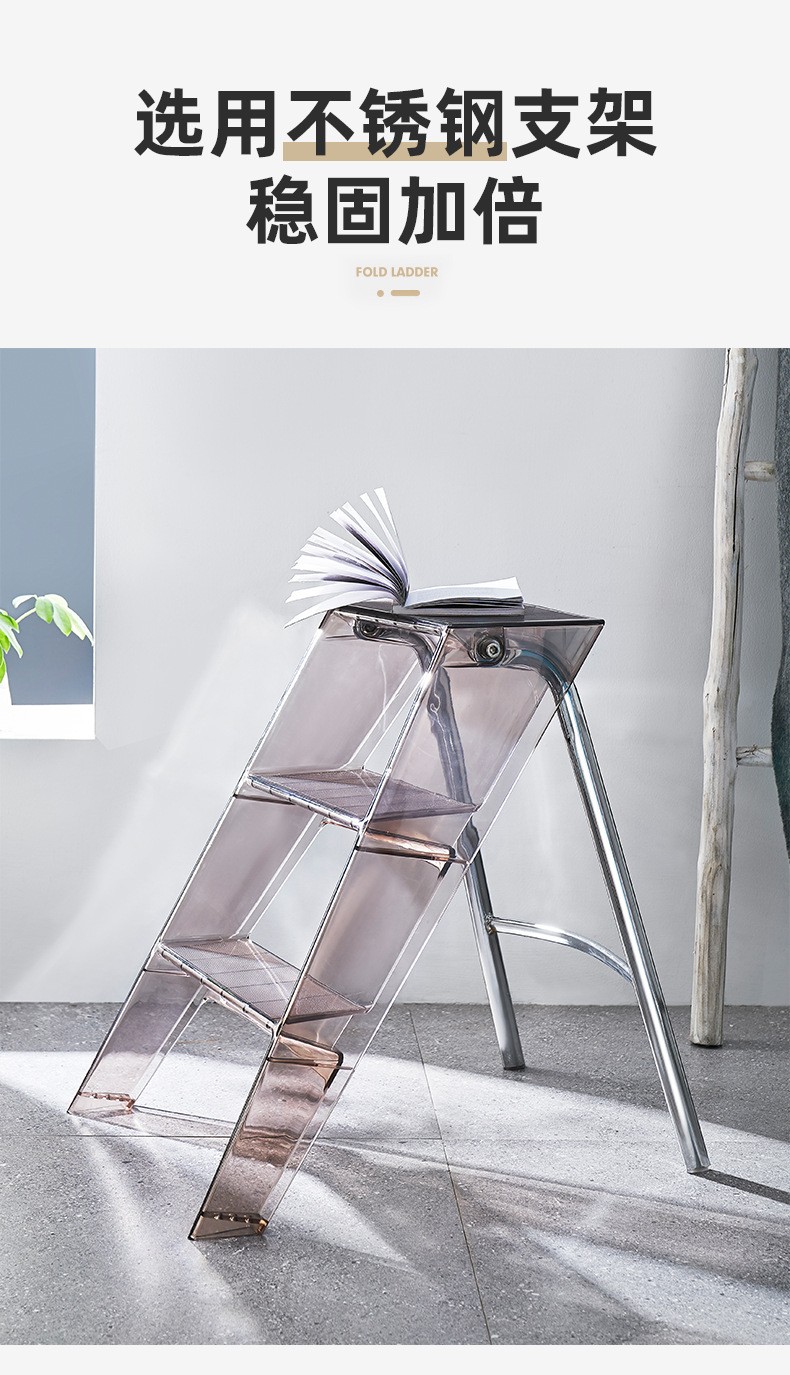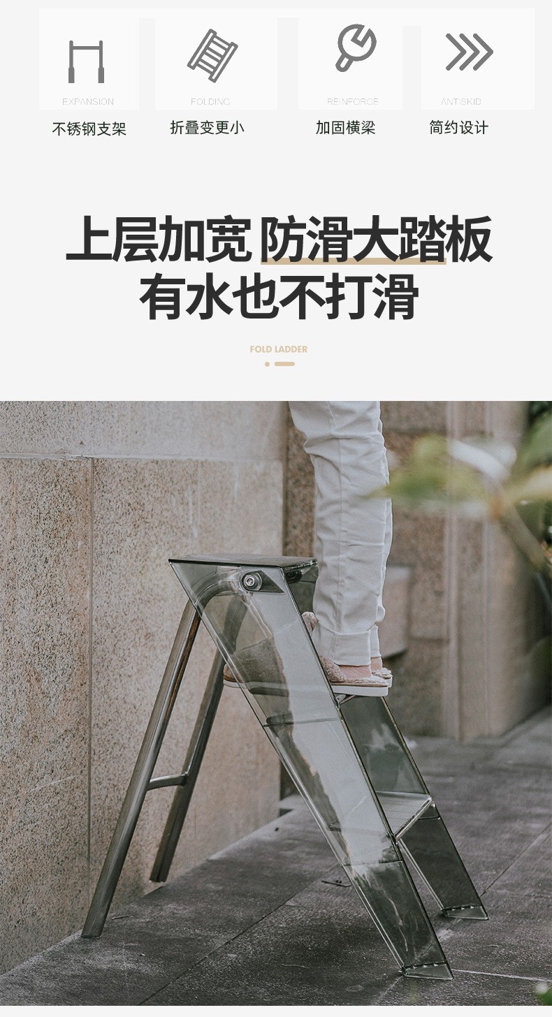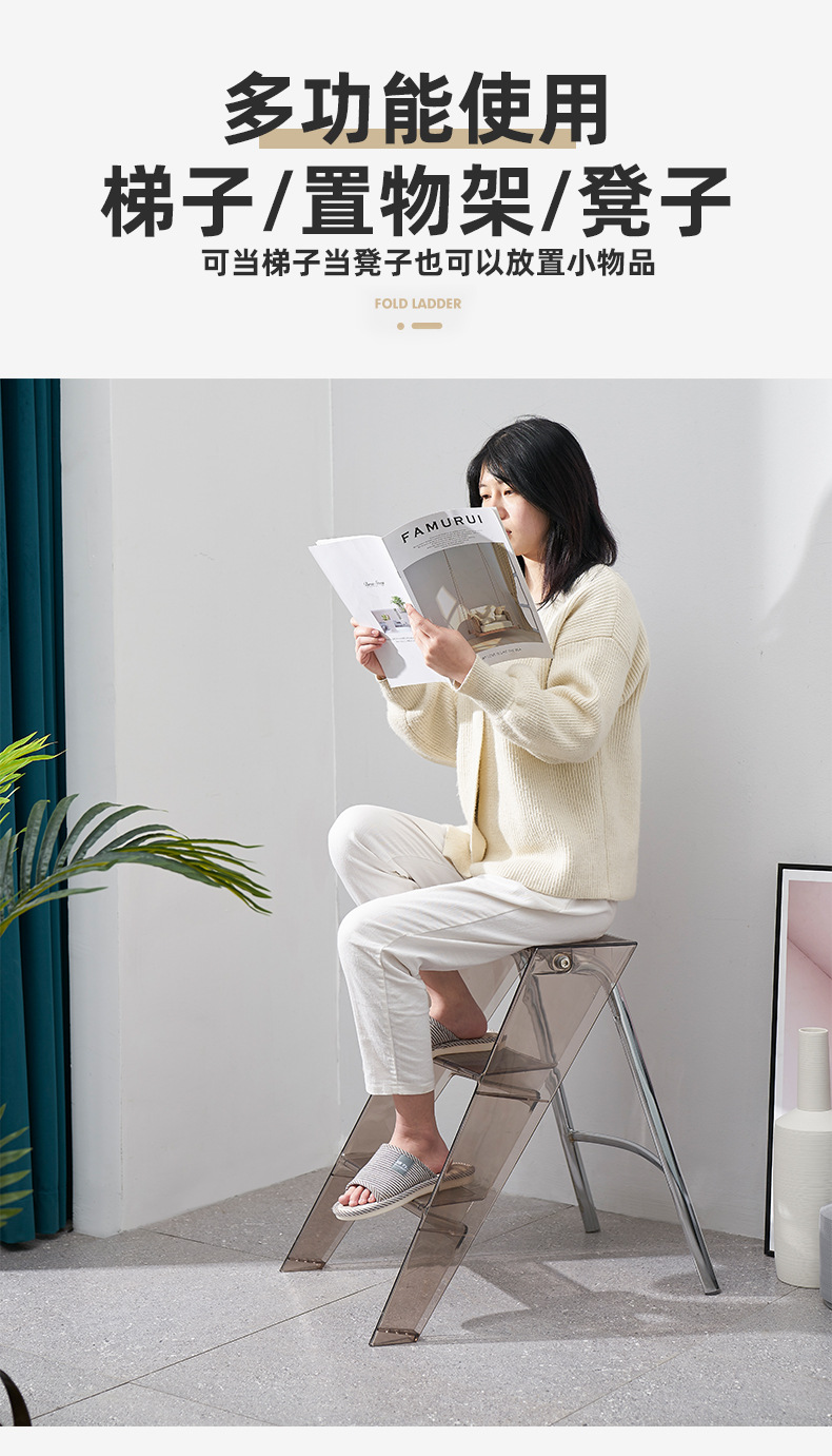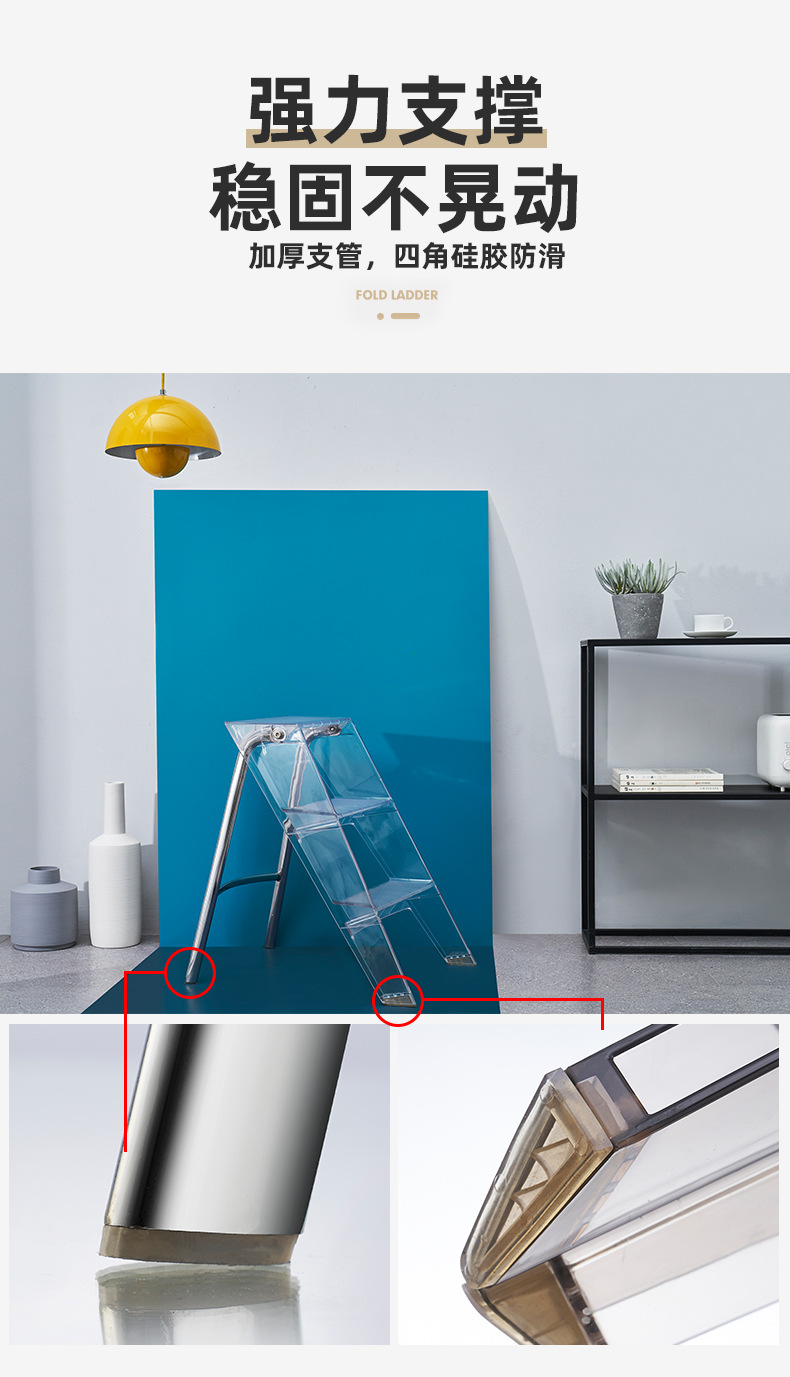 厂家热销 家用梯 多功能三步梯子 加厚折叠PC人字梯 不锈钢单侧梯